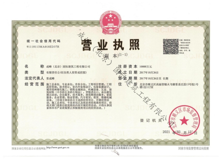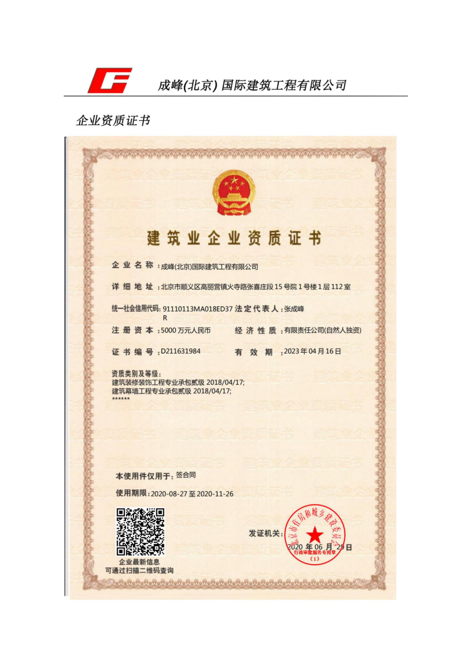成峰(北京)国际建筑工程有限公司(前身为北京天运运达幕墙玻璃装饰有限公司)本公司是集钢结构工程、玻璃幕墙工程、玻璃索桥及玻璃栈道工程、室内外建筑装饰装潢工程、设计、安装于一体的建筑工程总承包企业。